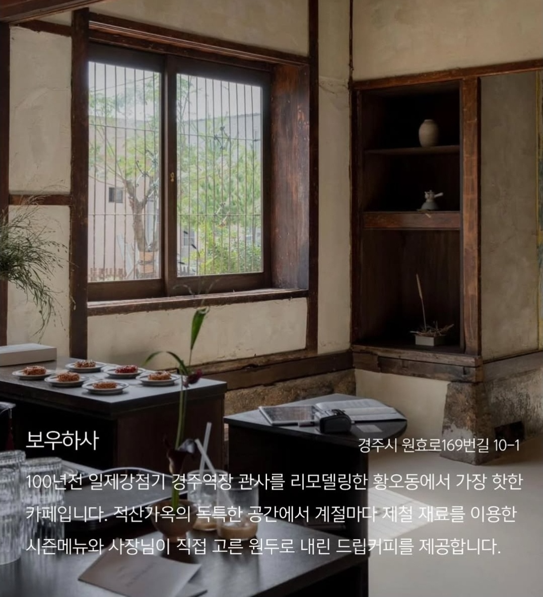- 보우하사 카페 위치: 경북 경주시 원효로 169번 길 10-1 카페 보우하사