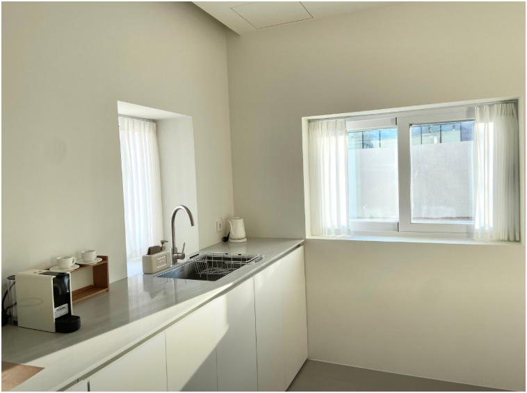 스위트룸은 커플룸에 비해 2배 이상 큰 객실이며 주방과 식탁, 소파가 있어서 좀 더 편안하게 머물 수 있습니다.